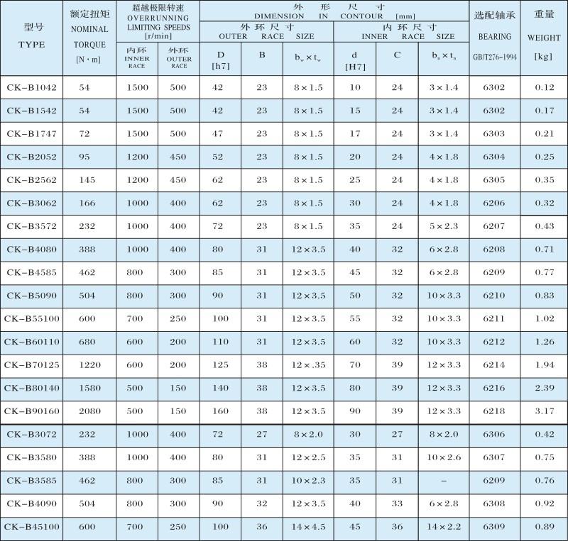 CK-B楔塊式單向離合器